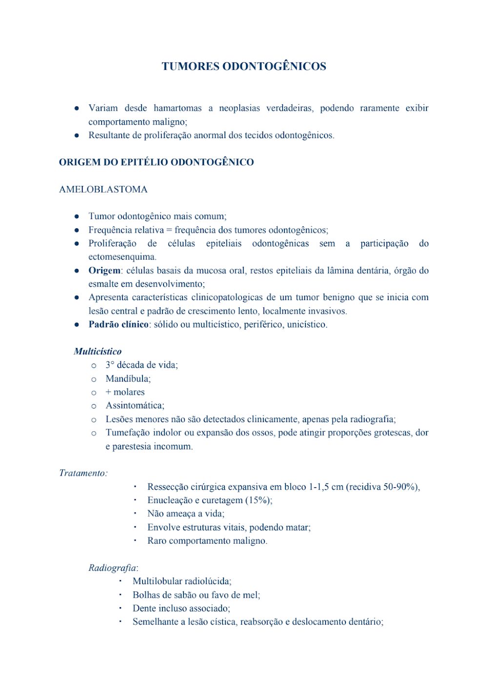 Este arquivo é uma ferramenta inestimável para estudantes de odontologia, residentes e profissionais que buscam aprofundar seus conhecimentos sobre patologia oral e maxilofacial. Ele serve como um guia prático para o entendimento do Ameloblastoma, desde sua etiologia até as complexidades de seu diagnóstico e tratamento.