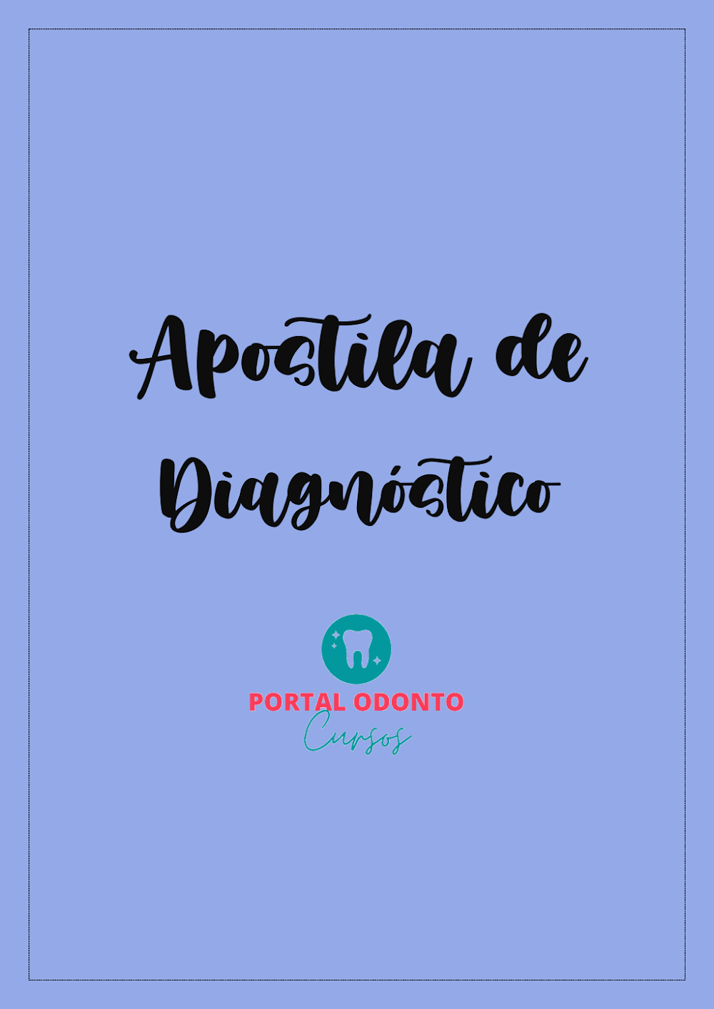 A capa da apostila, com seu design moderno e limpo, reflete a qualidade do material. O fundo em azul lavanda suave, a borda pontilhada preta e a tipografia elegante do título “Apostila de Diagnóstico” se complementam com o vibrante logo do PORTAL ODONTO. Este logo, com um dente estilizado em um círculo teal e o nome da instituição em vermelho e teal, reforça a especialização e a identidade visual da plataforma, que é reconhecida por oferecer cursos de excelência na área da odontologia.