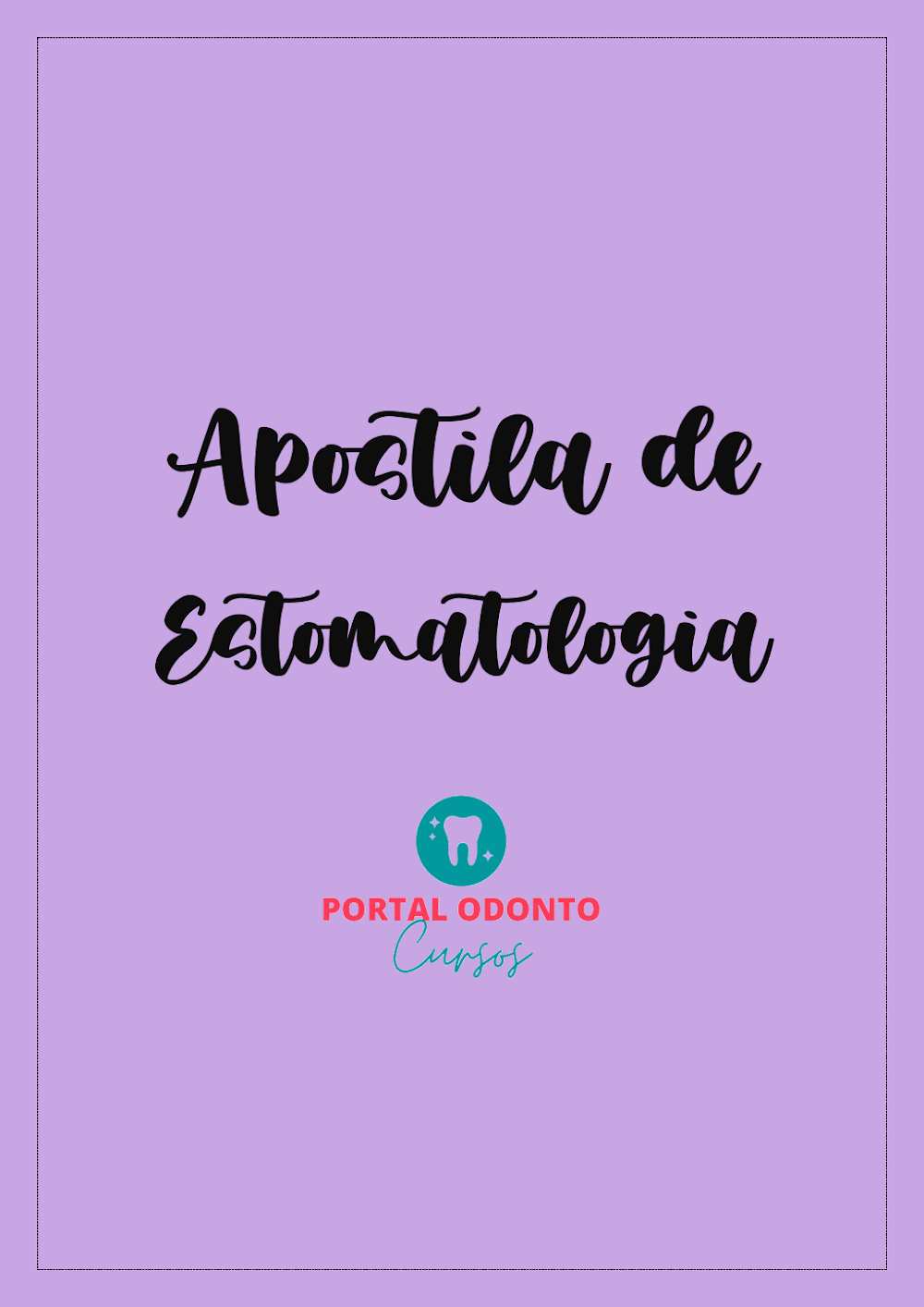 O material é apresentado com a credibilidade do PORTAL ODONTO Cursos, uma plataforma reconhecida por oferecer cursos e recursos de alta qualidade na área da odontologia. O design da capa, com seu visual limpo, moderno e profissional, em tons de lilás e verde-água, reflete a seriedade e o compromisso com a educação contínua. A utilização de fontes caligráficas no título e a identidade visual com o dente estilizado reforçam a especialização do conteúdo.