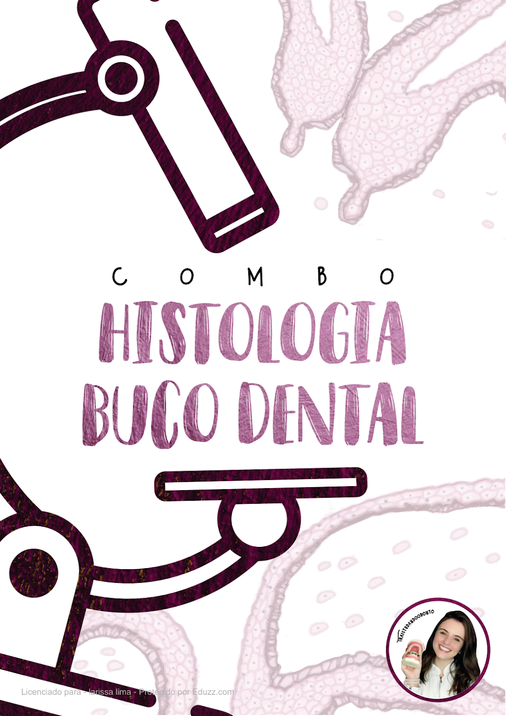 O material é assinado pela THAISTUDANDOODONTO, uma produtora de conteúdo digital que se destaca no cenário educacional odontológico. A identidade visual do combo, que inclui uma foto da criadora (uma jovem sorridente em jaleco branco, segurando um modelo de arcada dentária), reforça a credibilidade e a pessoalidade do material. Essa abordagem humanizada, comum em materiais didáticos modernos, busca criar uma conexão com o estudante, transmitindo confiança e expertise. A parceria com a plataforma Eduzz.com para o licenciamento e distribuição garante a segurança e a acessibilidade do conteúdo para um público amplo, como Larissa Lima, mencionada como licenciada.