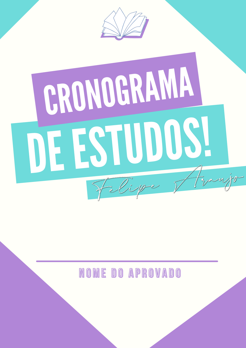 Este tipo de cronograma é ideal para uma vasta gama de pessoas: estudantes universitários que precisam gerenciar múltiplas disciplinas, candidatos a concursos públicos que demandam rotinas rigorosas, estudantes do ensino médio se preparando para vestibulares, ou qualquer pessoa que busque aprimorar suas habilidades de organização e disciplina. A personalização sugerida pelo nome “Felipe Araujo” e pelo placeholder “NOME DO APROVADO” convida o usuário a se apropriar do template, adaptando-o às suas próprias metas e jornada de aprendizado.