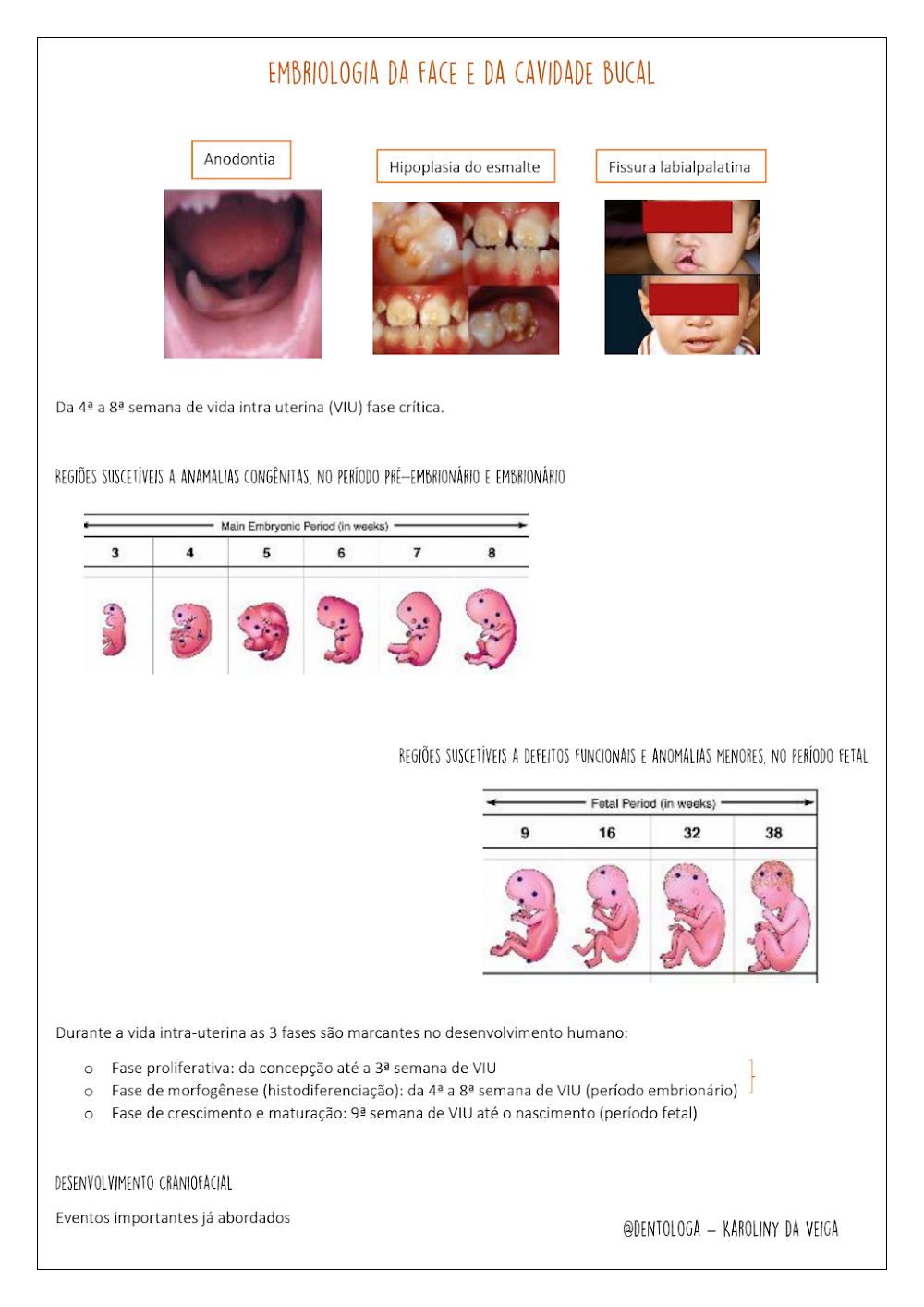 - Desenvolvimento dos Dentes: Um tópico de grande interesse para a odontologia, o documento mergulha na odontogênese, desde a lâmina dentária até a formação de esmalte, dentina e polpa, além do desenvolvimento dos tecidos de suporte periodontal.