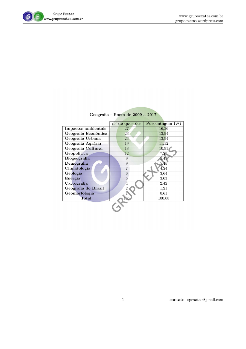 ENEM Geografia: Análise de Incidência de Questões (2009-2017)