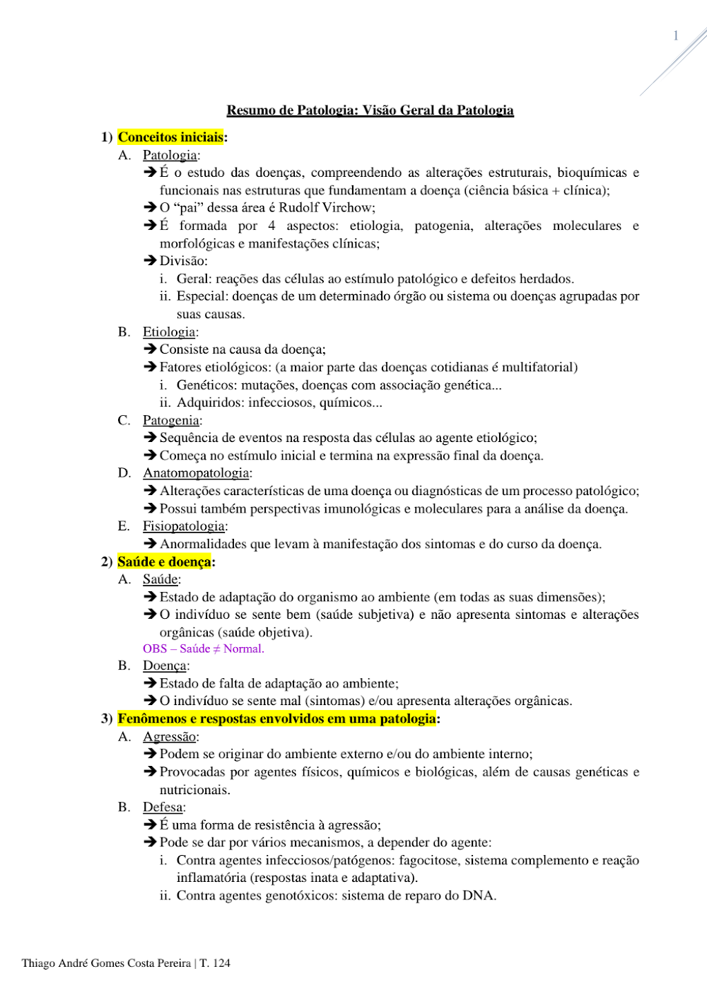 Como faço para ter acesso ao resumo essencial sobre os fundamentos da Patologia?